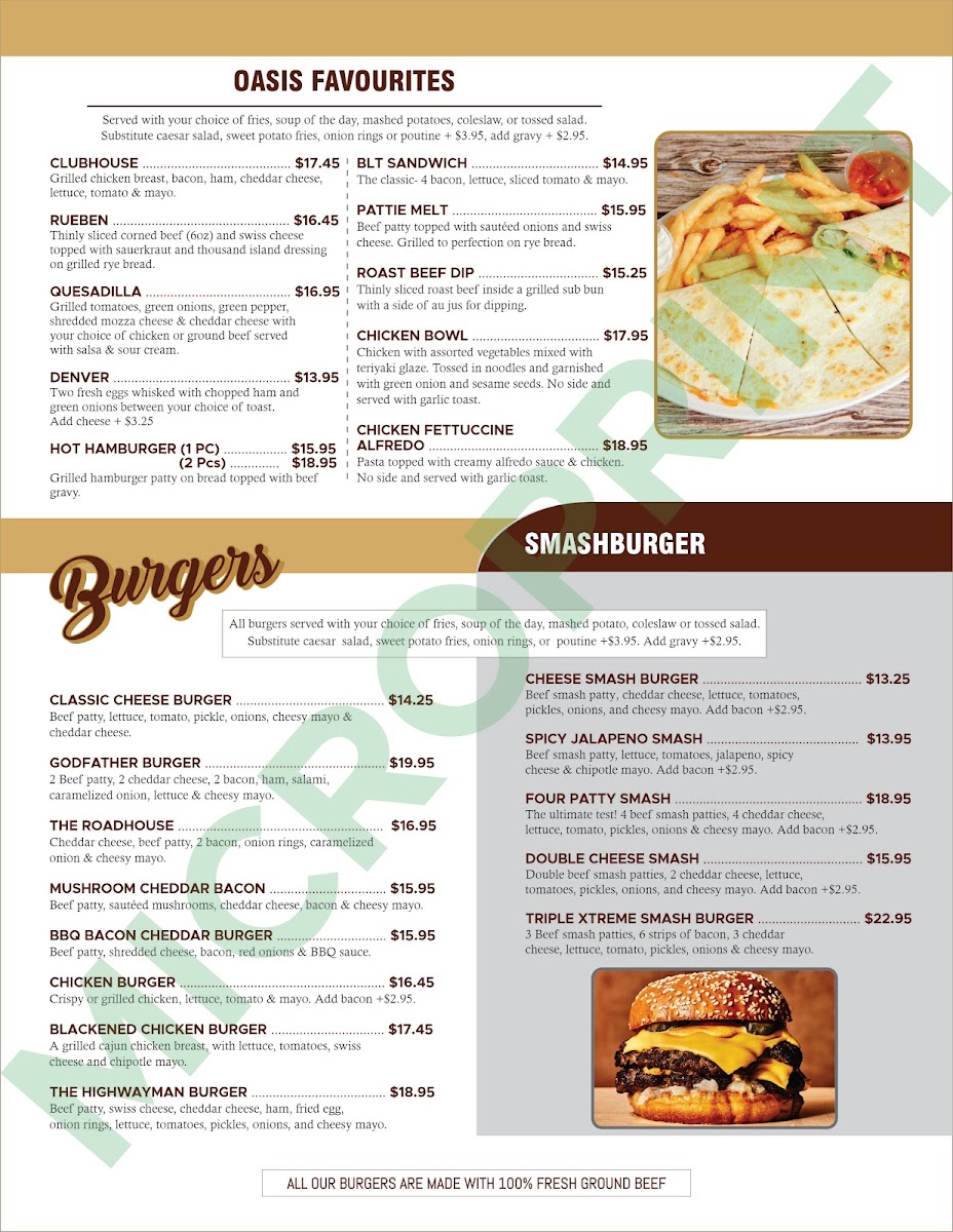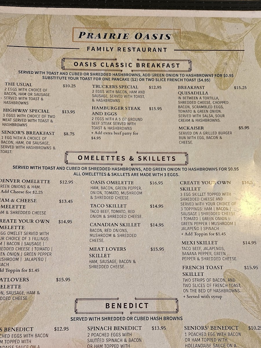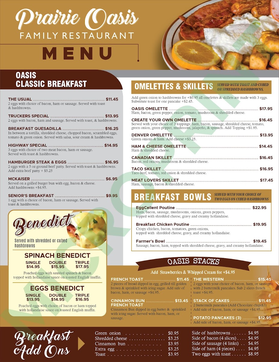 Prairie Oasis Family Restaurant Menu